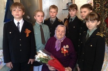 7 мая 2014 г. учащиеся 5Б класса (кл. рук. Албутова Т.Ф.) посетили труженика тыла Бармину Веру Михайловну.
