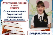 Поздравляем Хуснуллину Лейсан, ученицу 9 класса (учитель Шилова Е.М.) призера Регионального этапа Всероссийской олимпиады школьников по русскому языку. МОЛОДЕЦ!!!