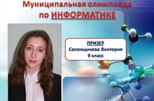 Поздравляем призера муниципальной олимпиады по информатике Солонщикову Викторию, ученицу 9 класса.