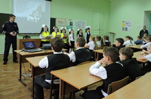 14.11.2016 в МБОУ "Гимназия №2" инспектор ДПС провел инструктаж по правилам дорожного движения в 6 А классе . В ходе беседы инспектор придал особое значение на светоотражающие элементы.