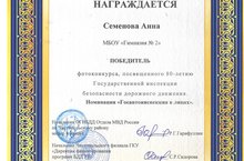 Семёнову Анну, обучающуюся 4 Б класса, с победой в муниципальном фотоконкурсе ,