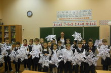 Вожатая учащихся 2 "Б" класса, Новичкова К., провела со своими подопечными мастер - класс по изготовлению бумажных снежинок для украшения Гимназии.