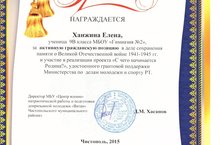 Множество грамот получила сегодня гимназия №2 из Центра военно-патриотической и допризывной подготовки молодежи "ВАТАН" за активное участие в Акции "Голуби мира". А именно: Учащиеся 9 "в" класса Исаншина Вера,Новичкова Ксения, Матвеева Татьяна, Петрова Любовь, Павлова Софья, Ханжина Елена, Панаева Алина. Поздравляем!