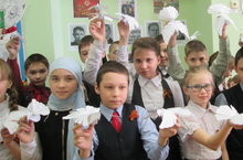 5 "Б" класс с классным руководителем Каримовой Л.Р. активно участвуют в муниципальном конкурсе "Голуби мира", организованном "Центром военно-патриотической работы "Ватан".