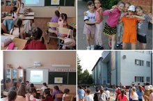 Сегодня в пришкольном лагере состооялись спортивные соревнования между отрядами Дети участвовали в таких мероприятиях, как "Шоу мыльных пузырей", флеш-мобе в Доме школьников. В отрядах проводились игры "Поле чудес", "Кто не спрятался", "Что, где, когда?".