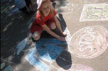 Сегодня в пришкольном лагере «Светофор 2013» прошел конкурс рисунков на асфальте по правилам дорожного движения.