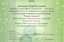 Призёр олимпиады по русскому языку "Чтения с секретом" 26.04.2005