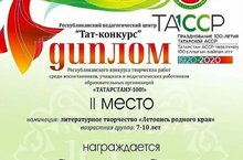 Ученики 2"а" класса Афлятунова Э. и Сунгатуллина С. (учитель: Валиуллина А.М.) заняли I и II места в республиканском конкурсе творческих работ среди воспитанников, учащихся и педагогических работников образовательных организаций "Татарстану-100!" в номинациях "Культура и быт татарского народа" и "Летопись родногго края".