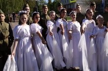 Учащиеся 7 "В" класса приняли участие в ежегодных театрализованных постановках на улицах нашего города ко Дню Великой Победы. Как застывшие кадры военных кинохроник, дети демонстрировали историю тех трагических для нашего народа времён.