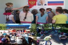 12.06.2017 в День России в пришкольном лагере «Радуга» и лагере труда и отдыха «Батыр» проведен час патриота «Россия многонациональное государство» в ходе которого ребята говорили о России, её государственных символах, о малой родине и о долге гражданина. В ходе мероприятия звучали стихи о Родине (конкурс , пословицы о Родине. Так же прошел конкурс рисунков на асфальте «Мы рисуем мир». Все очень старались, и рисунки получились очень интересные. Они говорили о большой любви ребят к своему родному краю, который является частицей большой Родины.