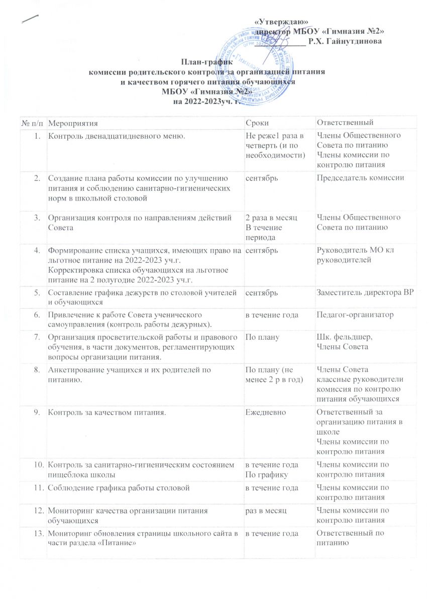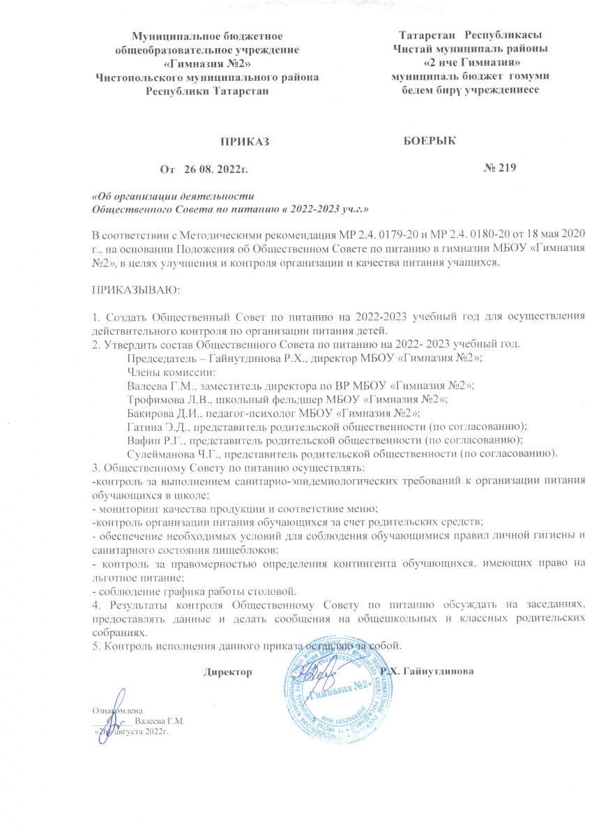 Приказы по организации питания в гимназии