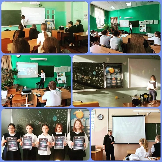 Всероссийский урок астрономии прошел для 5-11 классов по теме «Планеты солнечной системы» и «Чудеса Галактики». В ходе урока учащиеся смотрели видеоролик, презентацию и выполняли задания, используя методические материалы по организации и проведению урока Министерства просвещения Российской Федерации и Федерального государственного бюджетного образовательного учреждения дополнительного образования «Федеральный центр дополнительного образования и организации отдыха и оздоровления детей».