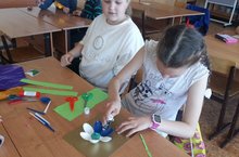 День Природы в лагере был посвящен поделкам из бросового материала. Учащиеся изготовили много интересного из киндеров, пластиковых бутылок, старых дисков, пластмассовых стаканчиков и тарелочек.