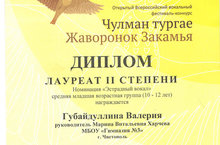 В феврале 2018 года в г. Набережные Челны проходил открытый всероссийский вокальный фестиваль – конкурс «Жаворонок Закамья». Ученица нашей гимназии Губайдуллина В. стала лауреатом 2 степени в номинации «Эстрадный вокал» (учитель: Харчева М.В.). Молодец! Поздравляем! Дальнейших творческих побед!