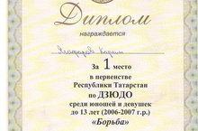 26-28 января в Казани прошло первенство Республики Татарстан по дзюдо. Победителем первенства Республики Татарстан по дзюдо среди юношей и девушек до 13 лет стал ученик 6 г класса Ягафаров К.. Поздравляем! Молодец!
