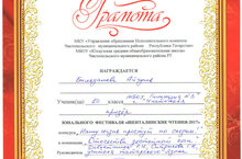 12 апреля 2017 года в Чистопольском филиале «Восток» КНИТУ - КАИ им. А.Н. Туполева прошла Республиканская научно-практическая конференция с международным участием «На крыле науки». Победителем в секции «Английский язык» стала Баландина Лидия, ученица 10 класса (учитель Храмова Н.И.).