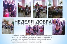 1А класс (рук. А. А. Аделева) в рамках Недели добра посетил детские сады №20, 26 с целью рассказа малышам об экологии, т. к по Указу В. В. Путина это год является Годом экологии.