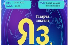 25 нче ноябрьдә гимназиядә «Татарча диктант» акциясе уздырылды. Татарча диктант быел җиденче тапкыр үткәрелә. Максат: татар теленә кызыксынуны арттыру, әдәби телдә дөрес сөйләм һәм дөрес язу күнекмәләрен үстерү, орфографик һәм грамматик хаталар ясамыйча язу теләге уяту, татар теле белгечләрен һәм туган тел (татар теле) укытучыларын тагын да популярлаштыру.