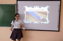 29 апреля в рамках недели английского языка был организован поэтический вечер английской поэзии «English poetry» для учащихся 5-8 классов (учитель Багаутдинова Г.Г.). Учащиеся продекламировали стихотворения известных английских поэтов: Дж.Байрона, Уильяма Блейка, Дж. Китса, Роберта Бернса и др. Разучивание стихов способствует развитию памяти, правильной постановки произношения, а также повышает интерес к изучению предмета.