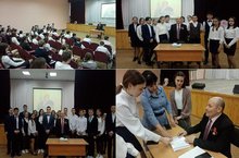 21 нче апрель көнне гимназиябездә “Бар дөньяда шундый кешеләр...”исеме астында шагыйрь,тәрҗемәче,Бөтенрәсәй сукырлар җәмгыятенең җирле оешма рәисе,укытучы реабитолог, “Энҗеләр” һәм “Ступени” әдәби берләшмәләренең әгъзасы,күп конкурсларның җиңүчесе,17 шигъри җыентык авторы-Рифкать Гәрәйхан улы Гардиев белән бик җылы очрашу булды. Очрашуда 7-11 нче сыйныф укучылары катнашты.