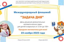 23 ноября 2023 года учащиеся МБОУ «Гимназия №3» Чистопольского муниципального района Республики Татарстан приняли участие в Международном флешмобе по математике «Задача дня». Это настоящий праздник математики! Ребята с удовольствием решали задачу и делились своими решениями.