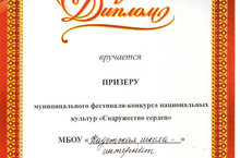 Творческий коллектив школы под руководством педагога-организатора Спиридоновой Н.А., педагогов дополнительного образования Замалетдиновой В.И., Батеневой Д.В. заняли ПОЧЕТНОЕ II место в муниципальном фестивале-конкурсе национальных культур "Содружество сердец"