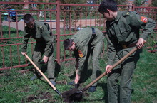Силами 8а и 8б класса на пришкольной территории было высажено более 30 новых деревьев. Саженцы берёзы и дуба заменили старые высохшие клёны.