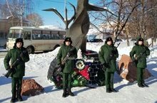 Сегодня наши кадеты совместно с офицерами: Ильиным В.Ф. и Хуснутдиновым Р. Г. приняли участие в торжественной церемонии возложения цветов возле памятника «Летят журавли».