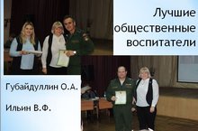 На методическом совещании, организованным Управлением образования совместно с комиссией по делам несовершеннолетних и защите их прав благодарственными письмами за вклад в воспитание подрастающего поколения, профилактику повторных правонарушений были отмечены офицеры-воспитатели Ильин В.Ф. и Губайдуллин О.А.