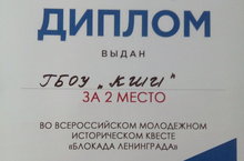 IIместо во Всероссийском молодежном историческом квесте «Блокада Ленинграда» 23.01.2018