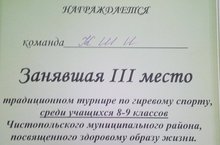 13 октября 2017 года на базе ГАПОУ «Чистопольский сельскохозяйственный техникум имени Г.И. Усманова», прошел турнир по гиревому спорту среди учащихся Чистопольского муниципального района, посвященного здоровому образу жизни. Учащиеся 8-10 классов ГБОУ «Чистопольской кадетской школы - интернат» приняли активное участие и заняли почетное III место. Примите поздравления! Молодцы!