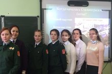 В рамках работы школьной библиотеки 1 декабря в 10 "б" классе прошла викторина, посвящённая "19 ноября 1942 году - началу контрнаступления советских войск под Сталинградом". Участвовало две команды: победила "Красная звезда" со счётом 13 баллов, "Катюши" набрали 10 баллов. Поздравляем с победой!