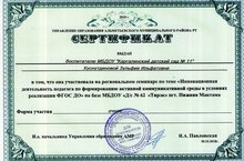 Воспитатель Хуснутдинова Зульфия Ильфатовна, является участником регионального семинара по теме "Инновационная деятельность педагога по формированию активной коммуникативной среды в условиях реализации ФГОСДО" на базе МБДОУ "Д\с № 62 "Тирэк" ПГТ Нижняя Мактама Нижнекамского муниципального района/