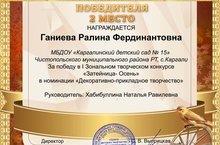 Ганиева Ралина заняла второе место в Зональном творческом конкурсе "Затейница-Осень." Руководитель: Хабибуллина Наталья Равилевна.