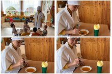 15 сентябрьдән 18 октябрьгә кадәр безнең балалар бакчасында яшелчә һәм җиләк-җимешләрдән ясалган эшләнмәләр, "Көз бүләкләре"дигән табигый материал күргәзмәсе узды. Барлык ата-аналар һәм балалар бик теләп катнаштылар, иҗатларын һәм фантазияләрен күрсәттеләр. Актив катнашуыгыз өчен барыгызга да зур рәхмәт!