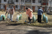 Субботник по благоустройству территории дошкольного учреждения и прилегающей к нему территории вышли сотрудники детского сада 23.03.2015