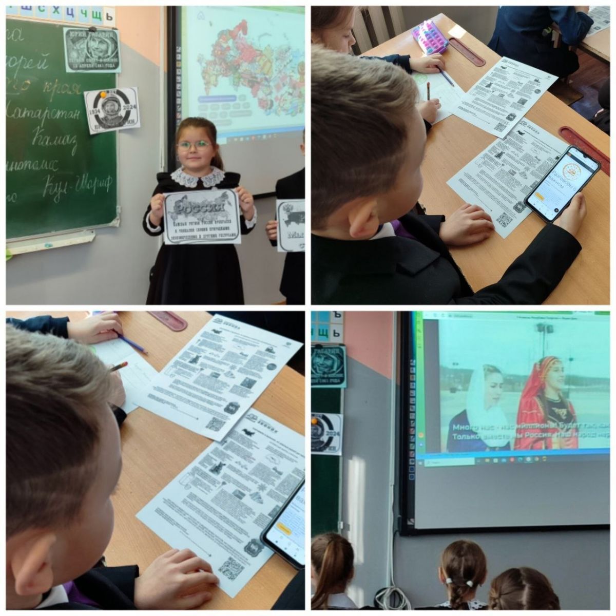 В ходе беседы учащиеся узнали, чем славится Россия, а также о том, как живут их ближайшие соседи. Кроме того, вместе с педагогами ребята совершили виртуальную экскурсию на выставку «Россия», которая сейчас проходит на ВДНХ. На экспозиции представлены все 89 регионов, каждый из которых уникален своей природой, историей и культурными традициями. В конце занятия обучающиеся подвели итог, что Россия – великая страна, каждый из 89 регионов прекрасен и уникален своими природными, экономическими и другими ресурсами, а самое главное, что мы едины в любви к России. -
