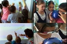 Сегодняшний день в пришкольном лагере прошёл под знаком веселых открытий, он так и назывался «Весёлые открытия". В этот день ребята узнали много нового о науке, опытах и экспериментах, познакомились с географией открытий, сами участвовали в различных экспериментах.