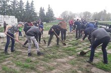 Гимназия укучылары Бөек Ватан сугышында Җиңүгә багышланган һәйкәл территориясен җыештырдылар.