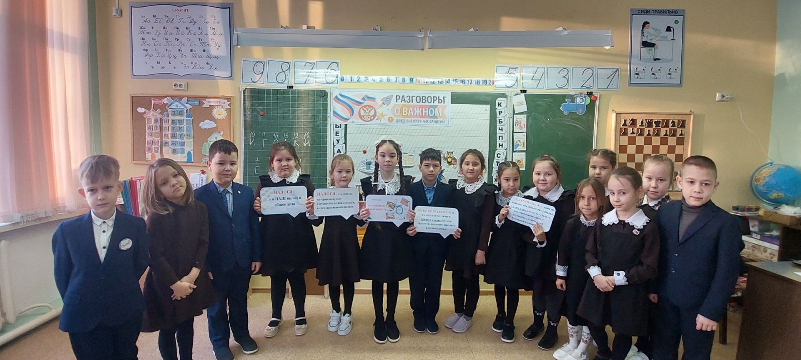В 1-4 кл. учащиеся в игровой форме разобрали откуда берутся деньги, кто должен платить налоги, на какие средства строятся школы, больницы и детские площадки. В ходе обсуждения также узнали, как благополучие государства зависит от уплаты налогов. Лучше понять систему налогообложения детям помог анимационный фильм «Про налоги и зверей». https://razgovor.edsoo.ru/video/3691/