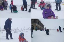 Наверное, всем нравится скатываться со снежных горок по мягкому белому покрытию. Во всяком случае, ребятам из пришкольного лагеря «Снеговик» это занятие по душе.