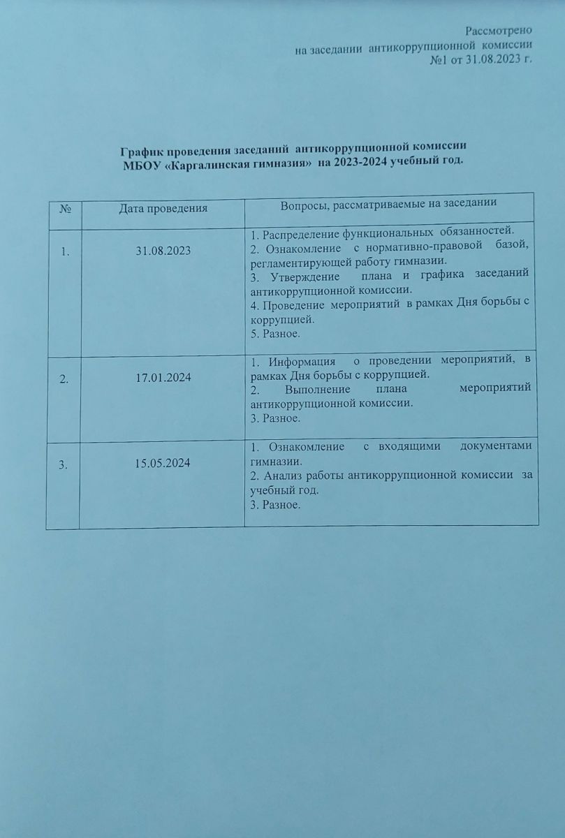 Приказ "Об утверждении плана работы антикоррупционной комиссии"