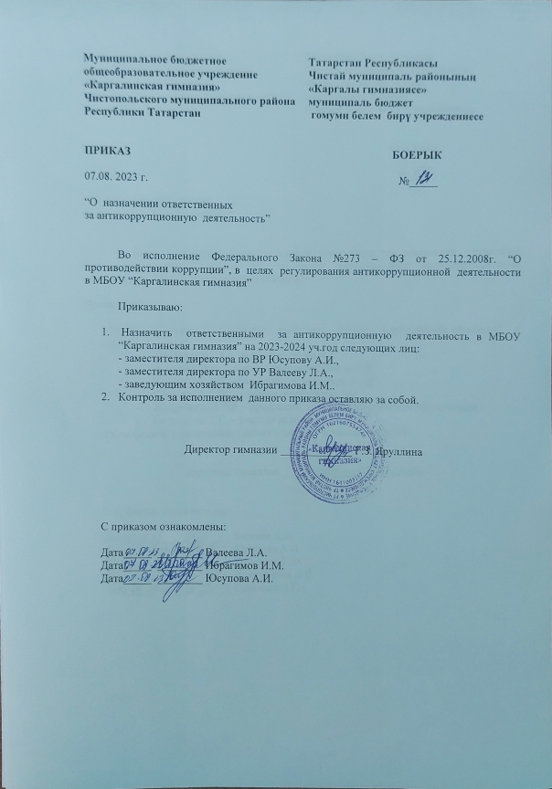 Приказ "О назначении ответственных за антикоррупционную деятельность"