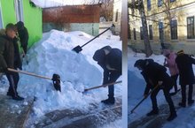 Уборка снега в школьном дворе.