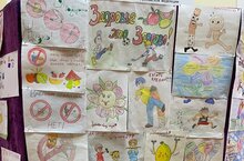 В фойе школы проходит выставка рисунков "Здоровье - это здорово!" в рамках месячника здорового образа жизни.