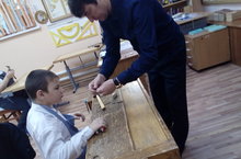 Учитель трудовго обучения Тихонов Е. В. провел открытый урок по слесарному делу "Работа с проволокой".
