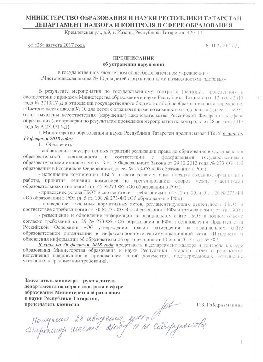 Государственное бюджетное общеобразовательное учреждение «Чистопольская школа № 10 для детей с ограниченными возможностями здоровья»/«Сәламәтлек мөмкинлекләре чикләнгән балалар өчен 10 нчы Чистай мәктәбе» дәүләт бюджет гомуми белем учреждениесе