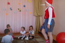 С целью реализации годового плана для детей было проведено развлечение по предупреждению детского дорожно – транспортного травматизма "Приключения Буратино в стране дорожных знаков»