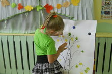 С целью развития художественно-творческих способностей детей была организована образовательная деятельность по нетрадиционному рисованию - печать листьями на тему "Осенняя береза".