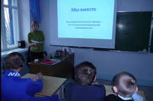 Учителем начальных классов Архиповой Л.Н. был проведён классный часс в 1-4 классах на тему: "Мы вместе" посвящённый присоединению Крыма к России.